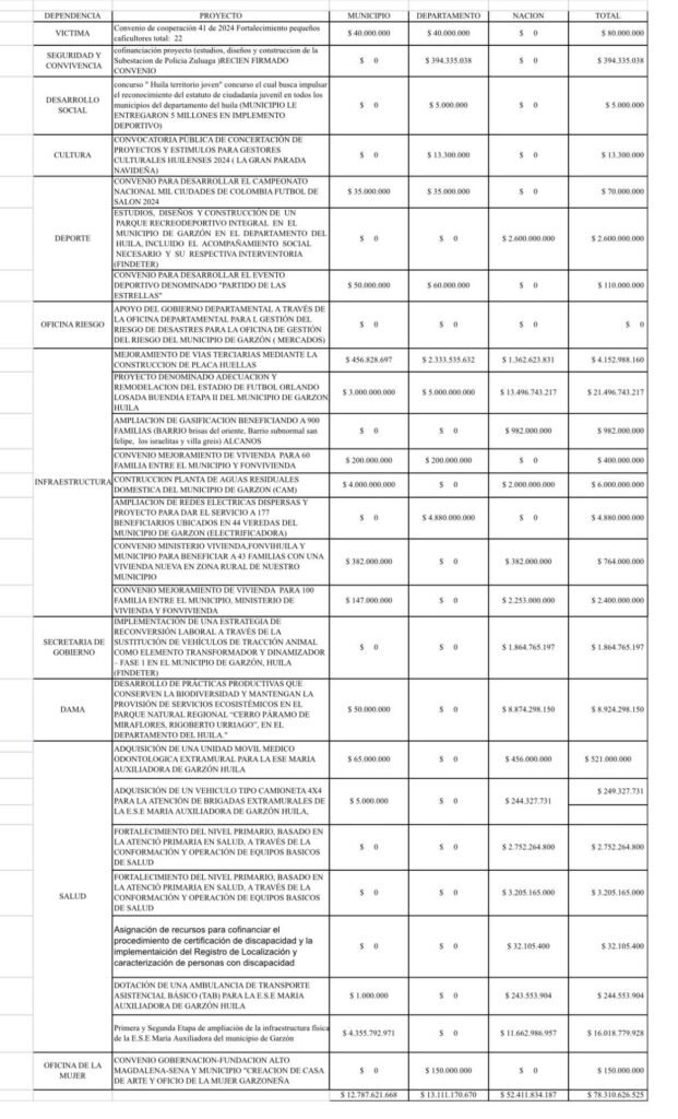 Esta suma representa uno de los logros más importantes en la historia del municipio y busca elevar la calidad de vida de los residentes, posicionando a Garzón como un modelo de progreso regional.