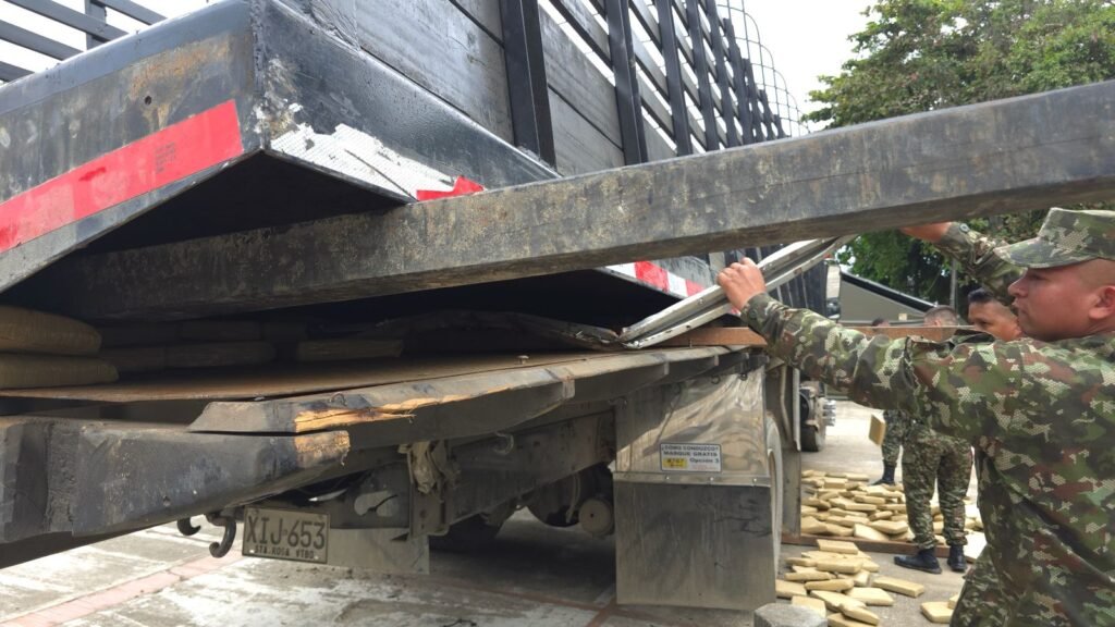 De manera simultánea se lograron dos resultados clave: en una vía que conecta al Huila con Caquetá fue detenido un furgón cargado con paquetes rectangulares de marihuana, mientras que en el kilómetro 53 de la Ruta Nacional N.° 20 (tramo Florencia – El Pórtico) las tropas hallaron otro camión con un cargamento similar.