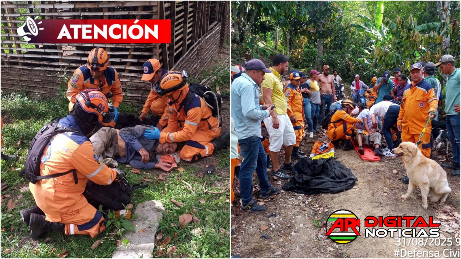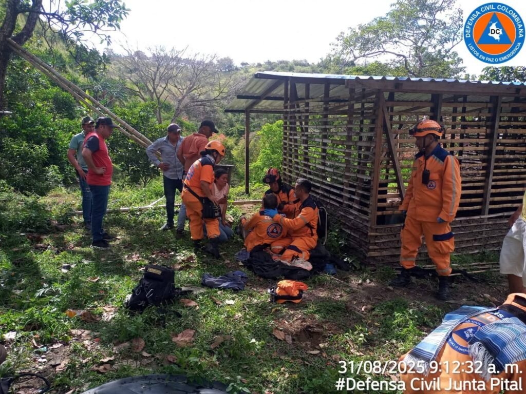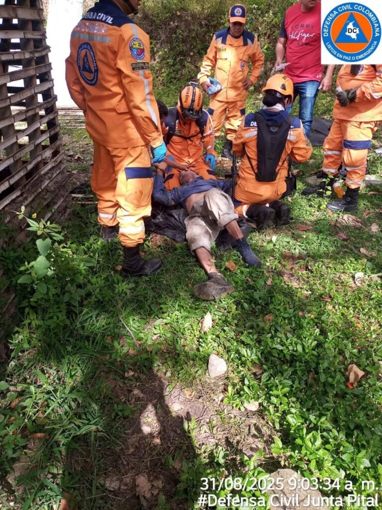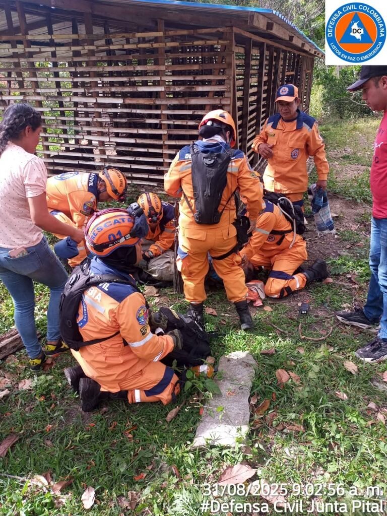 Una vez encontrado, los socorristas lo cubrieron para evitar hipotermia, le tomaron signos vitales y lo estabilizaron mientras se solicitaba apoyo médico. De manera improvisada, voluntarios construyeron una camilla para trasladarlo hasta el punto donde fue recogido por una ambulancia de la ESE local.