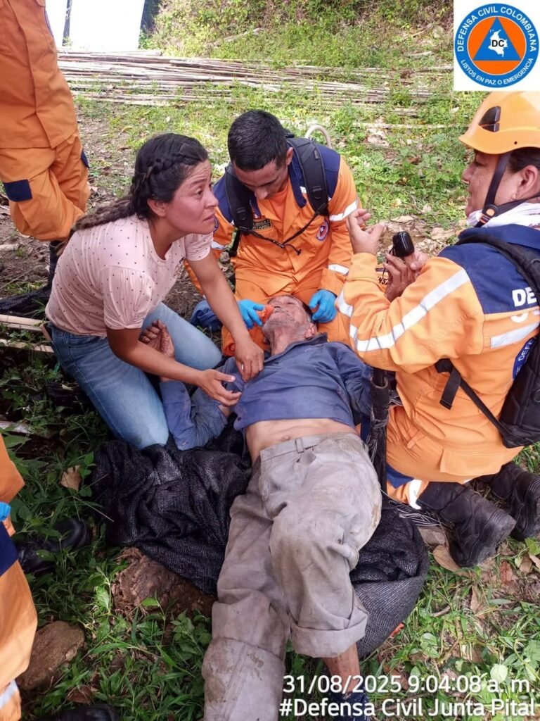 La Defensa Civil – Junta Pital, junto a su equipo de búsqueda y rescate, confirmó el hallazgo con vida del señor Abraham López, de 85 años, quien se encontraba desaparecido desde el pasado 28 de agosto en la vereda San Joaquín, zona rural de El Pital.