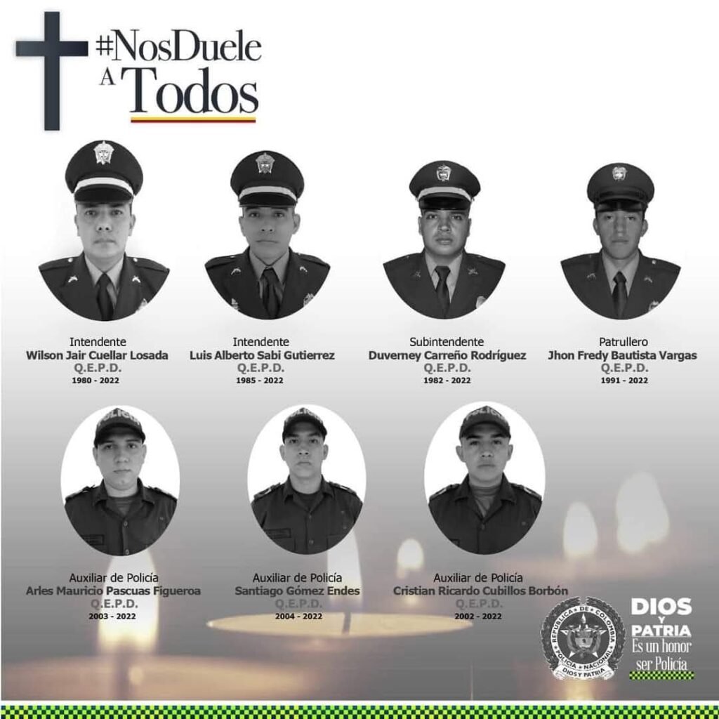 El hecho, registrado en 2022, conmocionó al país y dejó una profunda huella en la institución policial y en las familias de las víctimas. Según las investigaciones adelantadas hasta ahora, la principal hipótesis señala como responsables a integrantes del frente Ismael Ruiz, perteneciente a las disidencias de las Farc. Sin embargo, los avances en el caso han sido limitados, en tres años solo se han reportado dos capturas y nunca se ofreció una recompensa que contribuyera a esclarecer los hechos.