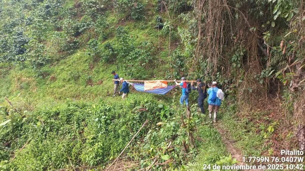 El descenso por terreno agreste fue lento y exigente, pero permitió llevar a la paciente hasta la ambulancia, que la trasladó al E.S.E. Hospital Departamental San Antonio de Pitalito. Allí ingresó a la sala de trauma, donde el personal médico —encabezado por el doctor Santiago González— confirmó que presentaba quemaduras de segundo grado profundas, quedando en observación especializada.