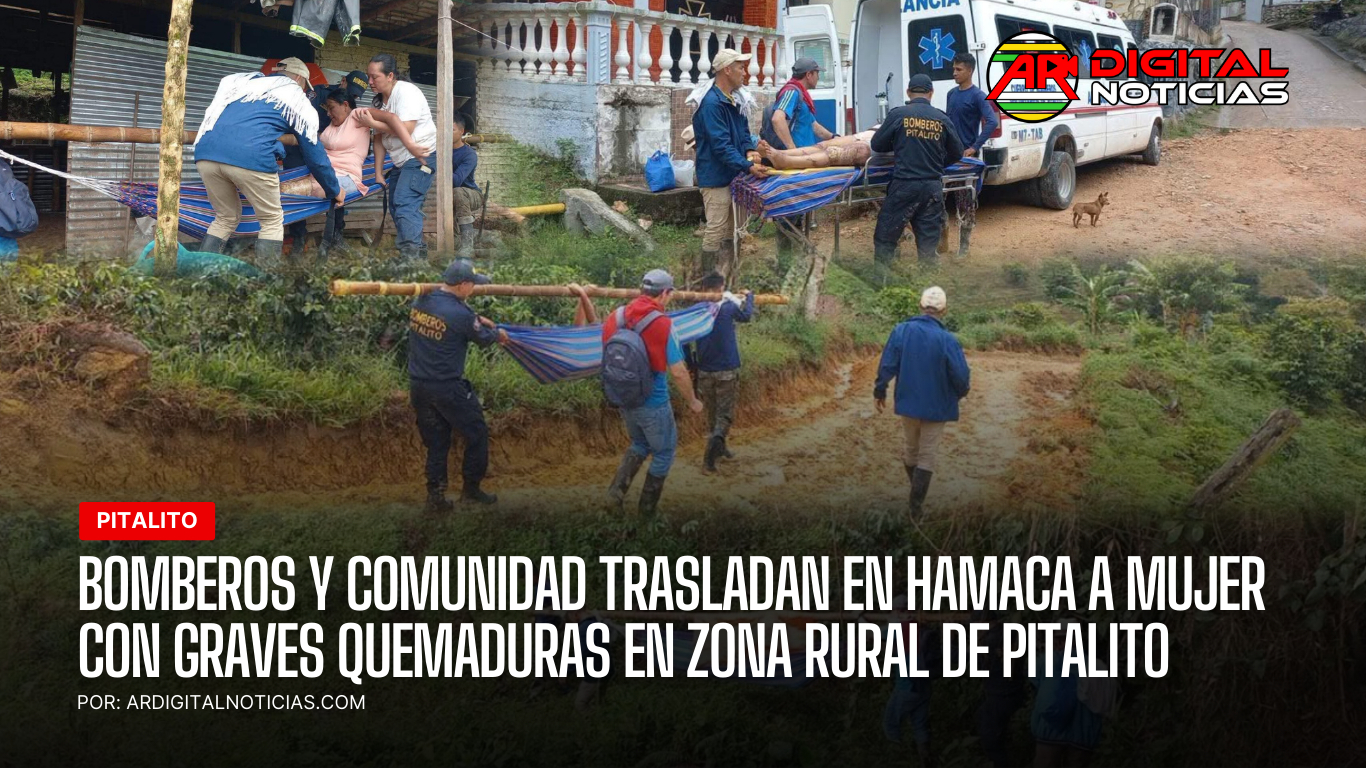 En la vivienda hallaron a la mujer con quemaduras en el abdomen y extremidades inferiores, lesionada tras manipular un recipiente con gasolina en un intento por avivar el fogón. Ante la gravedad de las heridas, los bomberos procedieron a la inmovilización y organizaron un sistema improvisado de traslado utilizando una hamaca y un tubo de guadua, con apoyo de residentes de la comunidad.