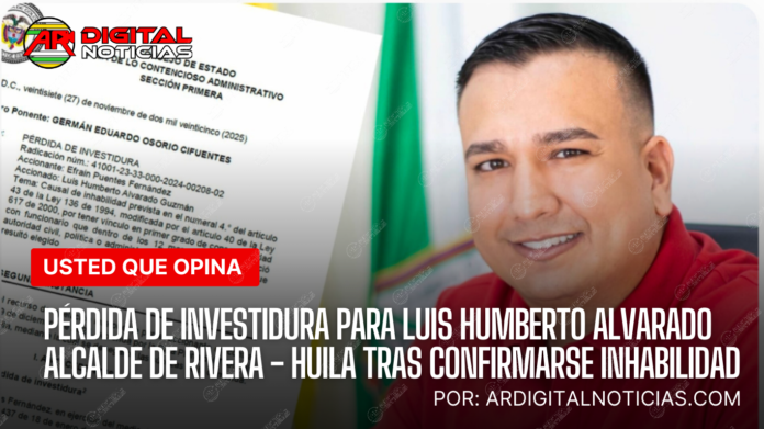 PÉRDIDA DE INVESTIDURA PARA LUIS HUMBERTO ALVARADO ALCALDE DE RIVERA – HUILA TRAS CONFIRMARSE INHABILIDAD