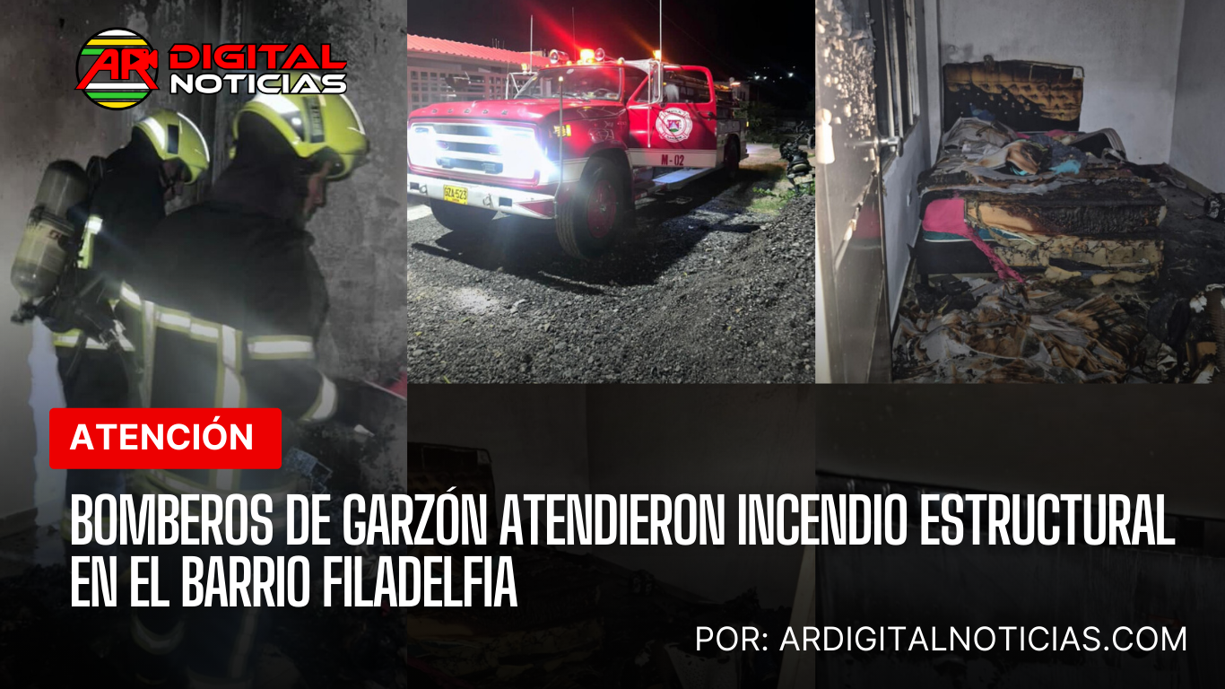 El Cuerpo de Bomberos Voluntarios de Garzón atendió durante la noche anterior un incendio estructural en una vivienda ubicada en el barrio Filadelfia, sector Huacanas, en el municipio de Garzón, Huila.