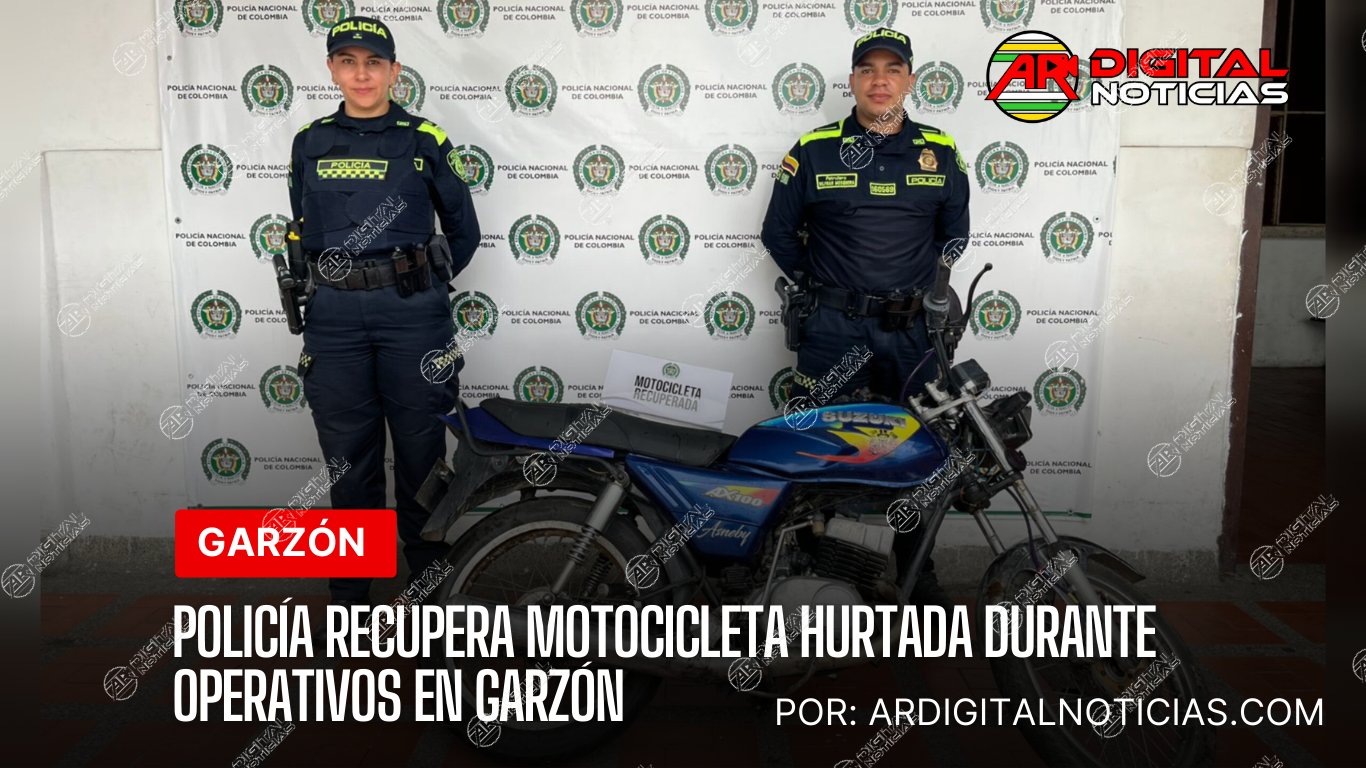 POLICÍA RECUPERA MOTOCICLETA HURTADA DURANTE OPERATIVOS EN GARZÓN