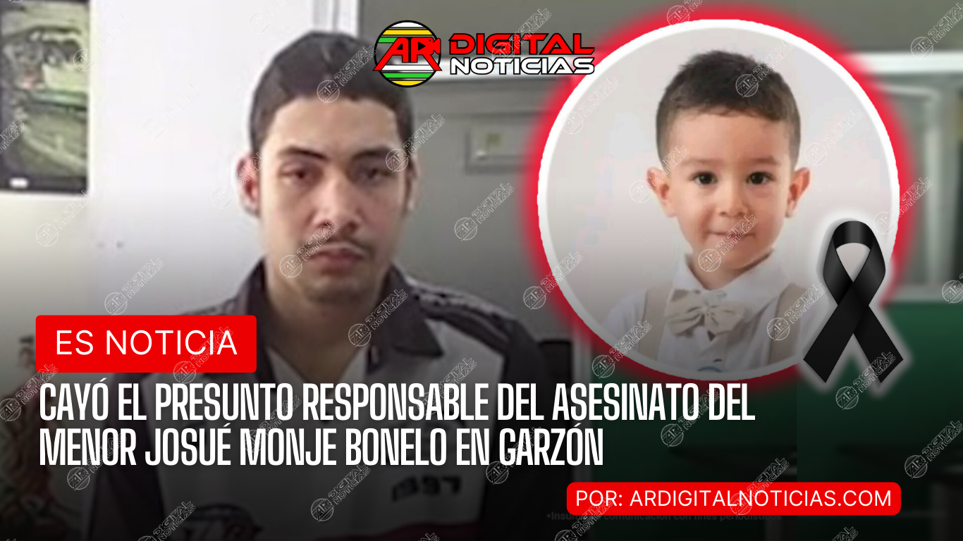 Luego de 32 meses de investigación, las autoridades confirmaron la captura de Gerardo Andrés Ibarra Chaux, señalado como el presunto responsable de la muerte del menor Josué Monje Bonelo, de tan solo cuatro años, en un hecho que conmocionó a la comunidad del sur del Huila.
