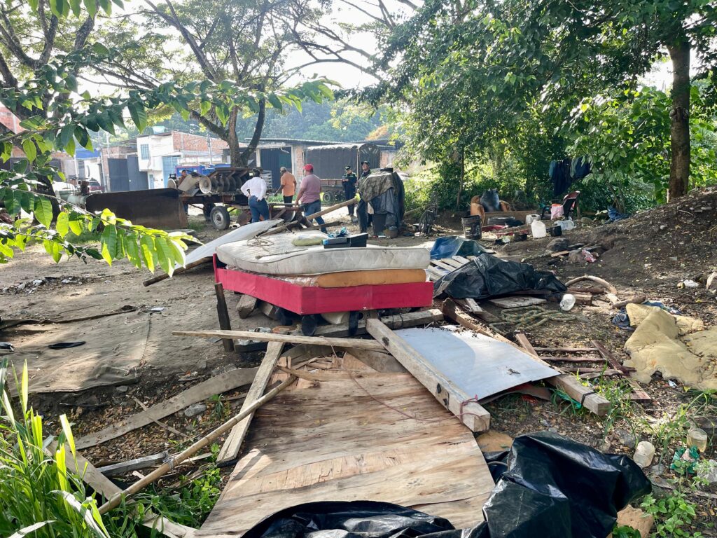 La intervención contó con el apoyo de la Policía Nacional y la Inspección de Policía, logrando el desmonte de varios cambuches construidos con plástico y madera, los cuales, según las autoridades, eran utilizados principalmente para el consumo de sustancias alucinógenas y otras conductas que afectan la convivencia.