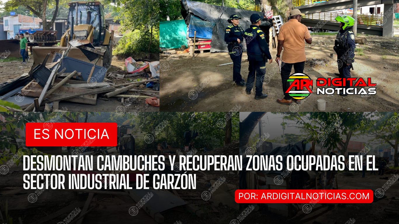 En atención a solicitudes de la comunidad, la Administración Municipal de Garzón, a través de la Secretaría de Convivencia y Seguridad Ciudadana, realizó un operativo de recuperación de espacio público en el sector industrial y en el área del antiguo matadero.