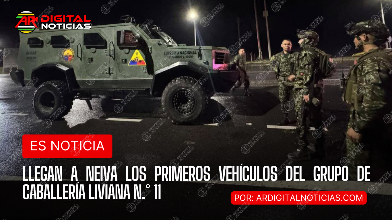 Los primeros vehículos del Grupo de Caballería Liviana N.° 11 comenzaron a arribar a Neiva, marcando el inicio del despliegue de esta nueva capacidad del Ejército Nacional en el Huila.
